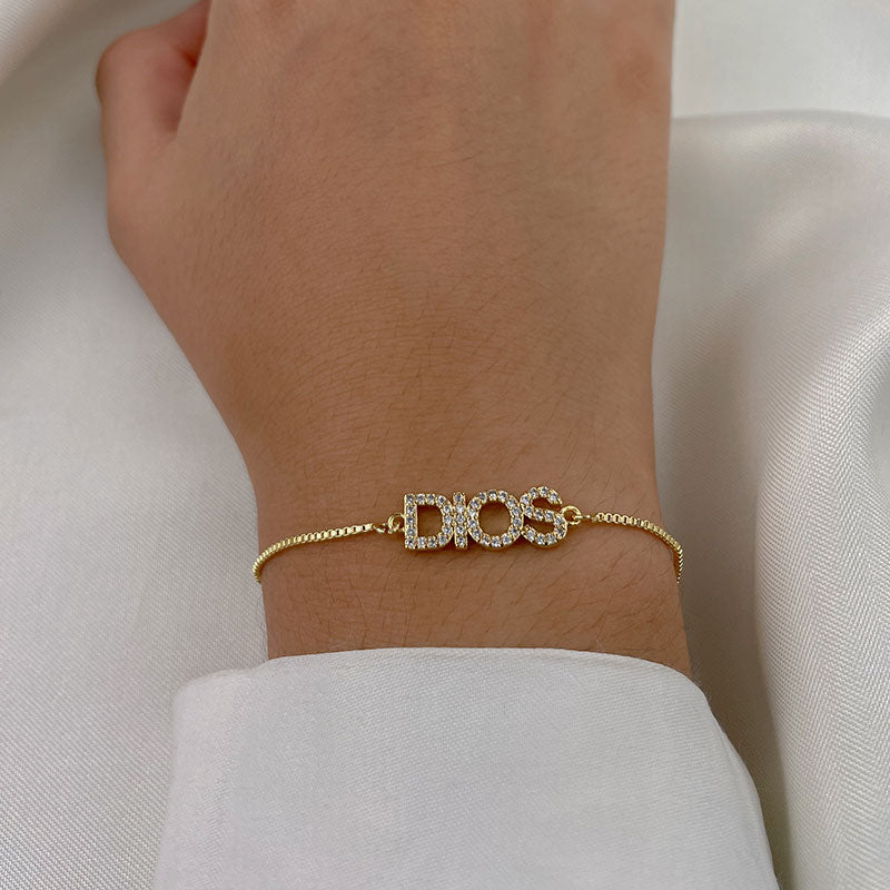 Pulsera ajustable bañada en rodio. El baño de rodio otorga a las piezas un brillo...
