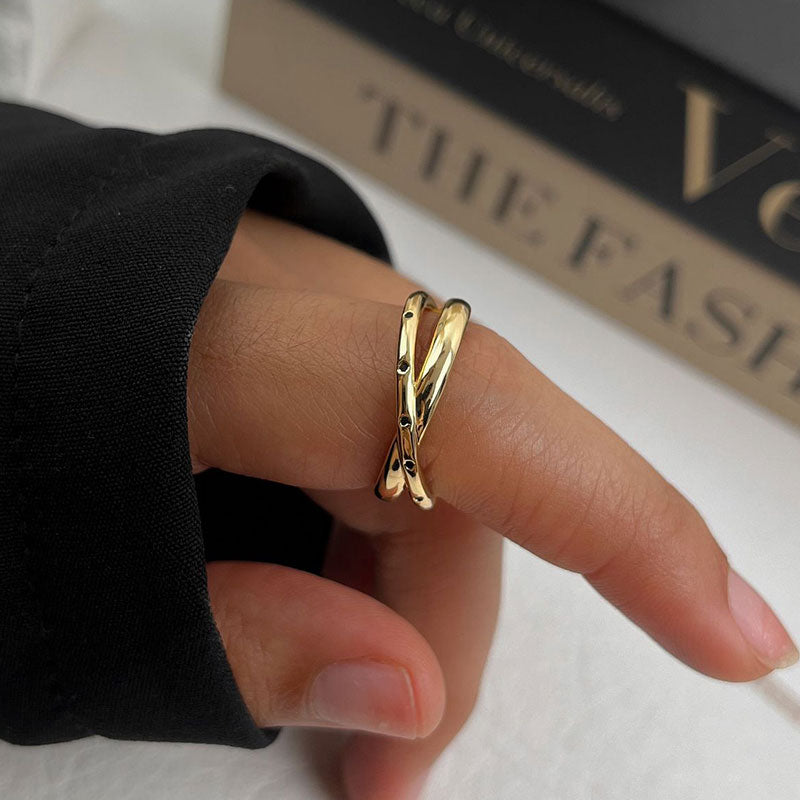 Anillo ajustable bañado en rodio.