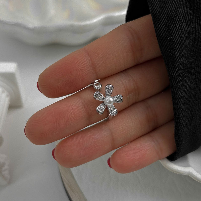 Anillo ajustable bañado en rodio.